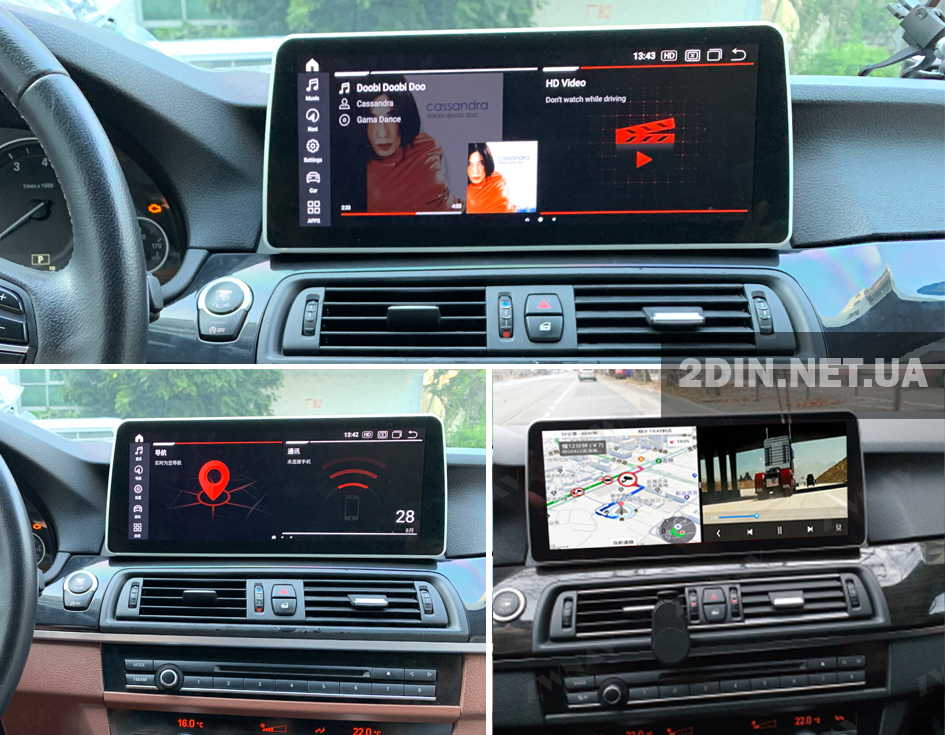 Особенностью и большим преимуществом устройства Commander F1012 для BMW 5 Series F10 (2010-2017) является то, что оригинальная система NTG остаётся в автомобиле и её функционал никаким образом не изменяется, т.е. все штатные функции продолжают работать. Меняется только экран, который дополняется блоком Андроид. Таким образом, в автомобиле будут работать две системы, оригинальная и Android, между которыми можно легко переключаться. Звук с Android подключается через штатный AUX порт (MMI порт). Наличие данного разъема также является обязательным критерием совместимости нашего устройства с Вашим автомобилем. Качество звучания общей системы также остается неизменным.