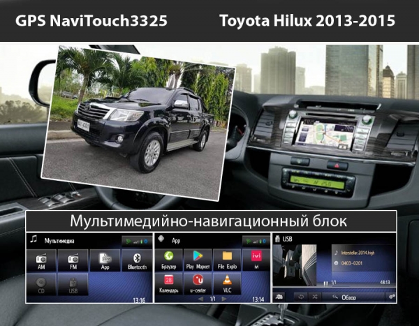 Навигационный блок Navitouch 3325 для автомобиля Toyota Hilux 2013-2015 - это удобная новинка, которая соответствует самым высоким требованиям водителя и не только поможет найти самый быстрый путь к вашей цели, но и значительно расширит функционал вашей штатной магнитолы благодаря Android.