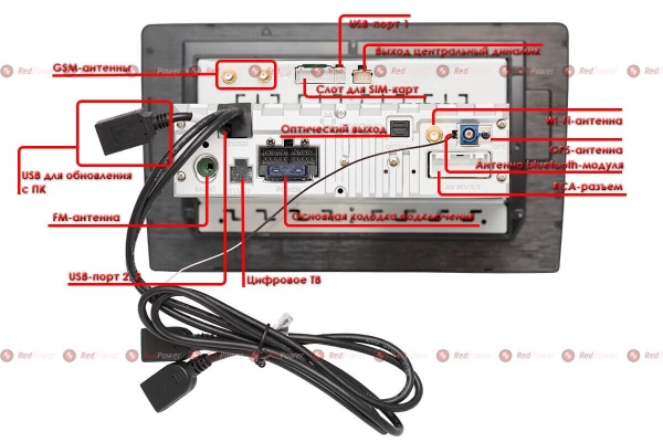 Магнитола имеет множество интерфейсов для подключения разнообразных устройств: USB флешок, IPOD/IPHONE/IPAD. Магнитола RedPower оснащена видеовходом, и входом для подключения камеры заднего вида. Из дополнительных аксессуаров также можно доукомплектовать магнитолу видео-парктрониками и датчиками температуры/давления в шинах.