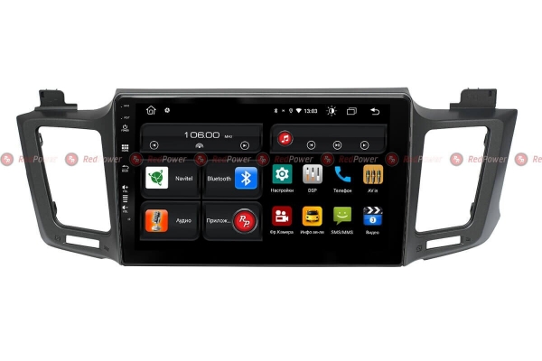 Штатная магнитола RedPower специально разработана для автомобиля Toyota Rav4 2013-2018. Управление магнитолой осуществляется благодаря сенсорному дисплею, а также родными кнопками, расположенными на руле автомобиля. Магнитола полностью совместима и с CAN-шиной автомобиля, и выводит на дисплей всю ту информацию, которую выводила и родная магнитола. Она идеально устанавливается в штатное место и не требует вмешательства в проводку автомобиля. Цвет и качество пластика соответствует оригинальному.