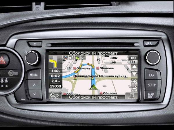 Автомобиль Toyota Yaris 2011-2014 оснащённый системой Toyota Touch имеет возможность подключения дополнительного навигационного блока от Toyota. Стоимость такого блока у дилера ориентировочно 1200 у.е. Во-первых это достаточно дорого, во-вторых непрактично. Узнайте у дилера, каким образом и как часто будет происходить обновление карт, а так же сколько это будет стоить. К сожалению вразумительного ответа, Вы получить, скорее всего, не сможете. Тогда зачем переплачивать за бренд.