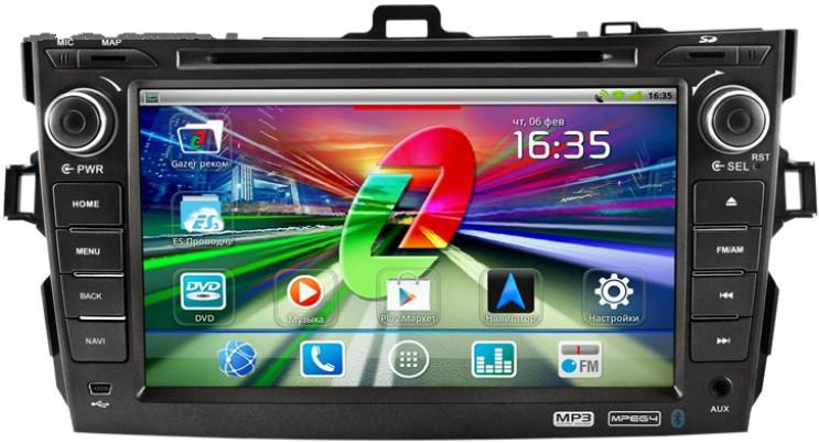 Штатная магнитола Toyota Corolla (ОС Android) – RoadRover. Данная автомагнитола имеет все те же функции, которые присутствуют в предыдущей модели, но оснащена операционной системой Android. Это повышает ее функциональность, дает возможность устанавливать сторонние программы на устройство.
