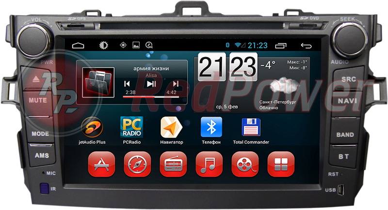 Купить штатную магнитолу для автомобиля Toyota Corolla - RedPower 21063B Android 4.4 (1024x600)