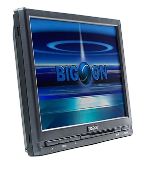 Открывает наш тест, как и положено, самый доступный монитор в группе. А между тем он единственный, комплектуемый даже двумя установочными «мыльницами»: одна из них более компактная (190 мм шириной), а вторая создаёт дополнительную рамку вокруг дисплея, но ширина её 230 мм. Трёхметровый соединительный кабель заканчивается тремя гнёздами AV-входа. Второй AV-вход оформлен гнездом Mini jack. Поскольку четырёхконтактные соединители такого типа довольно редки даже в столицах, соединительный кабель входит в комплект. Таким образом, изготовителю удалось обойтись без интерфейсного блока. Правда, если потребуется включить два таких монитора, придётся позаботиться о разветвителе сигнала. Кнопки под экраном не очень эргономичны, но пользоваться ими приходится не так уж часто, тем более что всё управление можно вести и с помощью пульта ДУ. Кнопки пульта даже немного крупнее, нежели у средней «карточки». Диммер снижает ток лампы тыловой подсветки довольно существенно, так что яркость экрана тоже понижается очень заметно. Стандартные ИК-наушники надёжно работают в пределах угла ±30 градусов по горизонтали и 20 градусов вниз. Но при смещении вверх от нормали к экрану приём ухудшается, и это огорчительно, поскольку оптимальное направление наблюдения экрана как раз снизу-вверх (с точки зрения экрана). При управлении параметрами картинки на экране появляется крупная врезка, которая закрывает изрядную часть его площади, и это может мешать настройке.