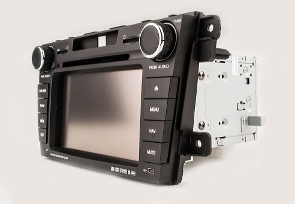 Обладает ярким дисплеем оптимального размера. Управление происходит с помощью сенсорного экрана и при помощи физических кнопок. Также, манипуляции функционалом устройства происходят и посредством кнопок штатного рулевого колеса.